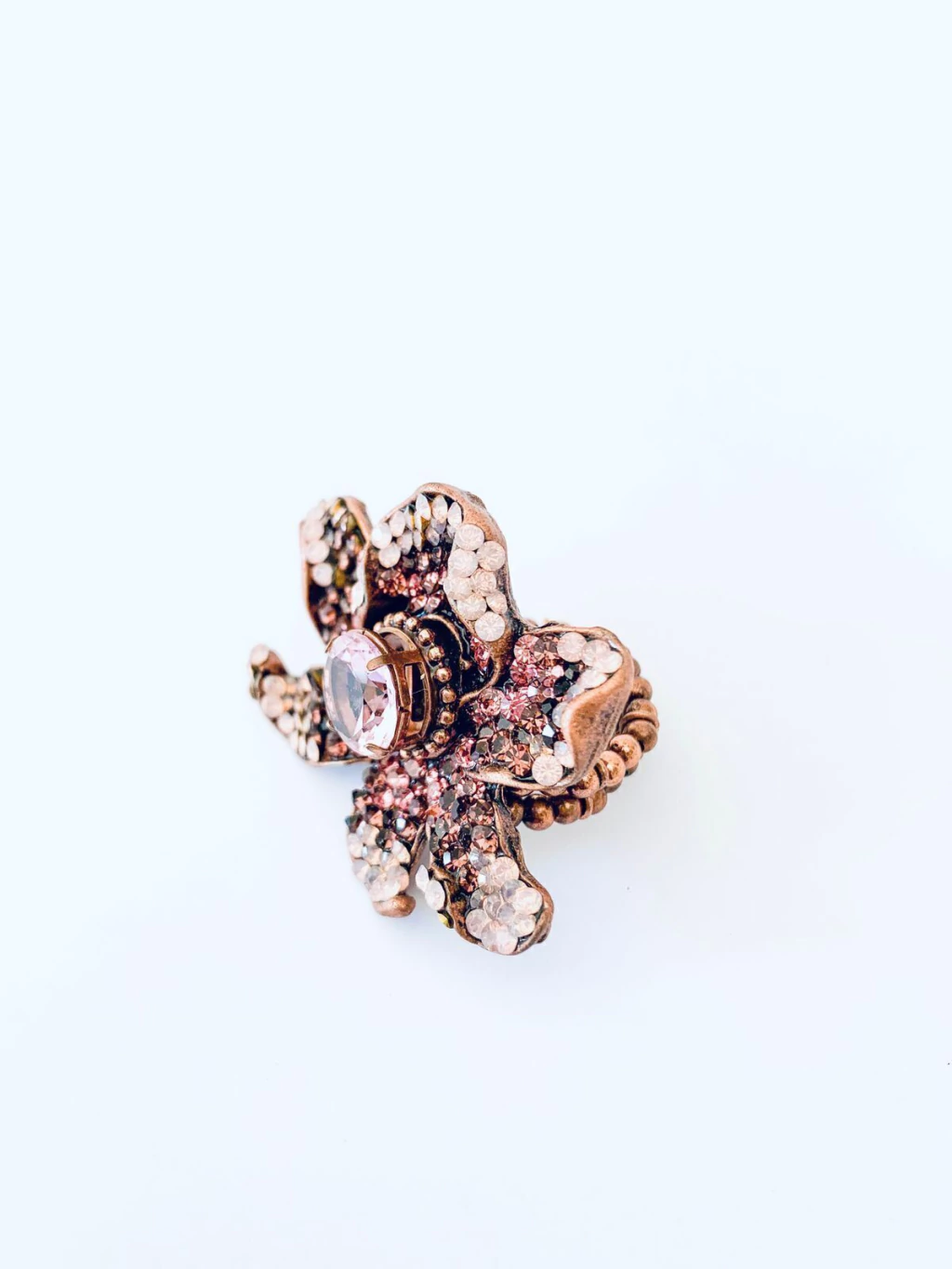 * Anel aro flexivel de flor em strass lilás, e light peach.