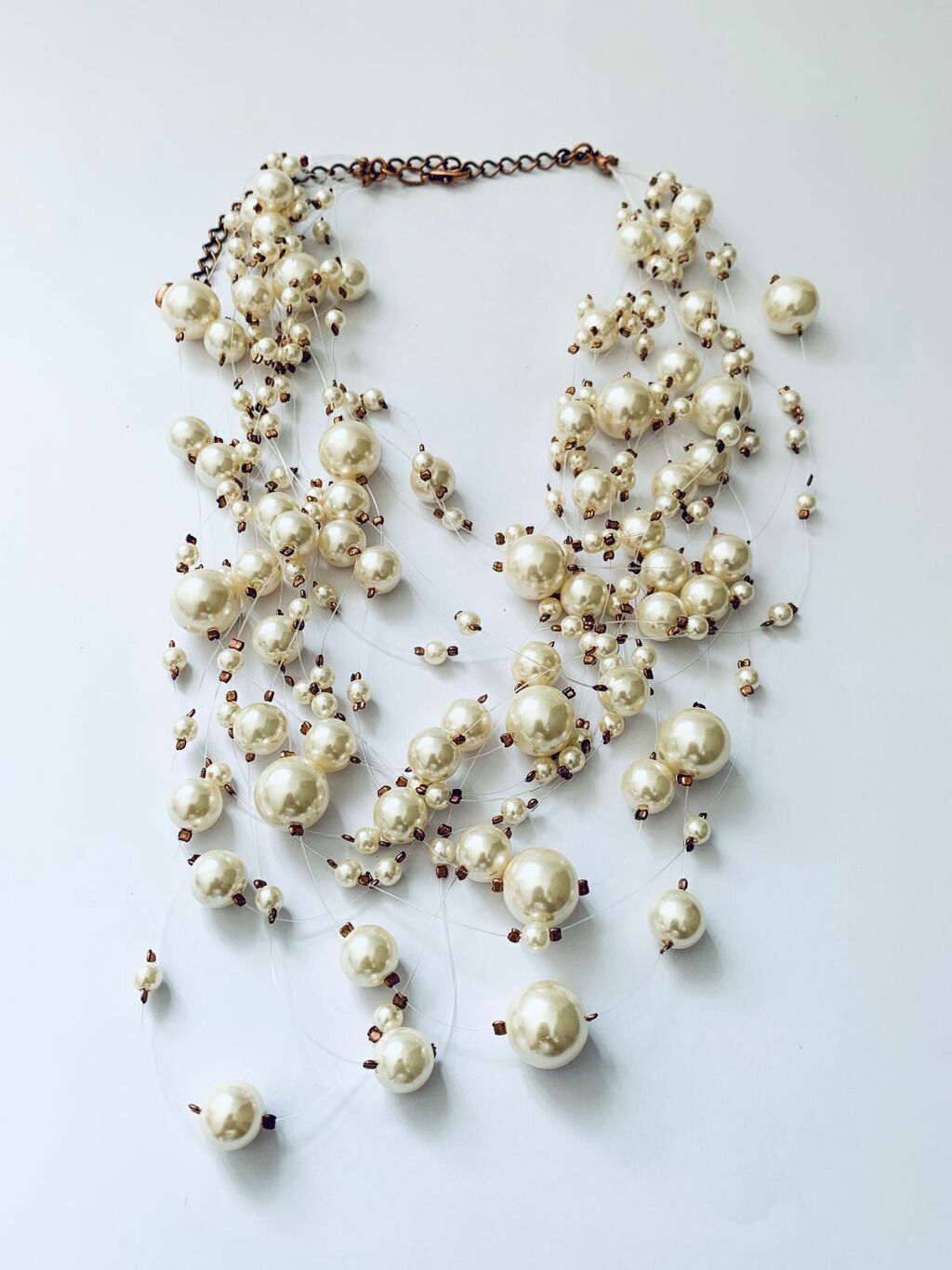 Colar perólas espaçadas com 16 voltas, banho no cobre velho.