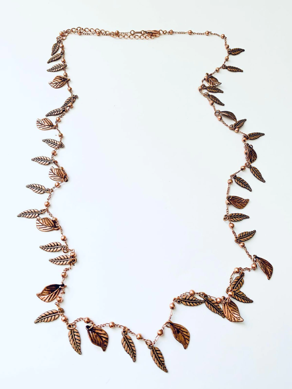 banho cobre velho colar com folhinhas colar comprido colar delicado colar organico