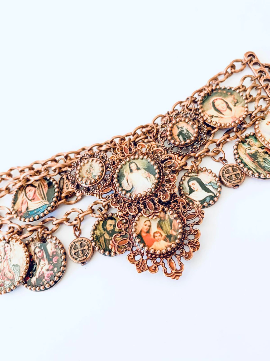 PULSEIRA COM MEDALHAS RESINADAS NO COBRE VELHO